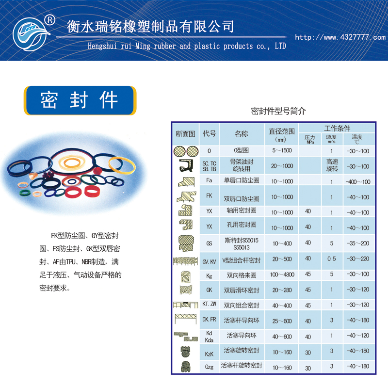 FK型防尘圈、GY型密封圈、FS防尘封、GK型双唇密封、AF由TPU、NBR制造,满足于液压、气动设备严格的密封要求。