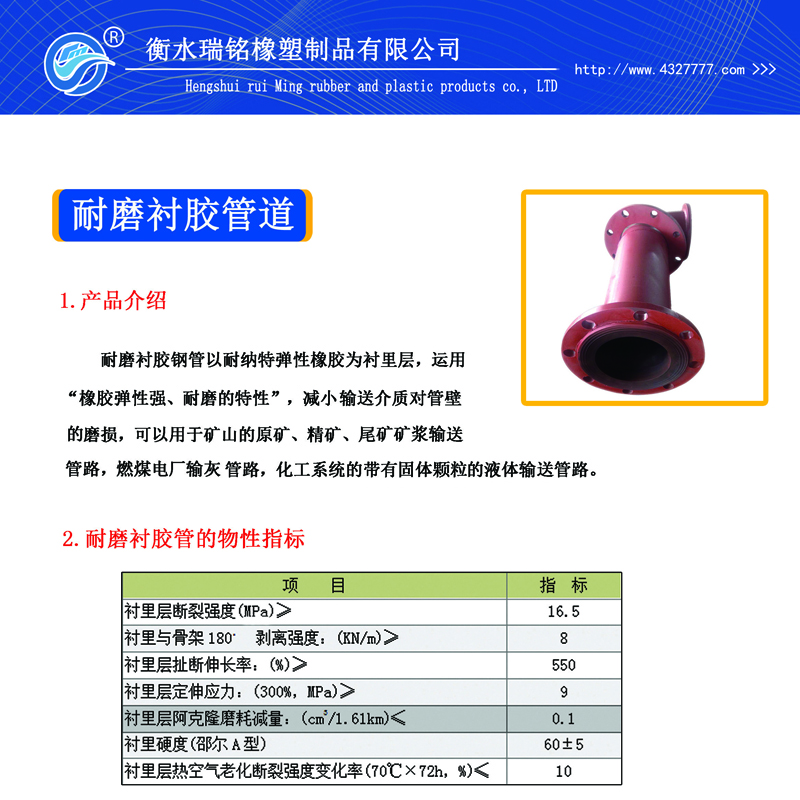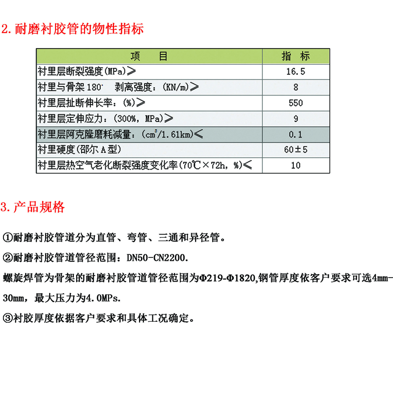 耐磨衬胶钢管以弹性橡胶为衬里层,运用“橡胶弹性强、耐磨的特性”,减小输送介质对管的磨损,