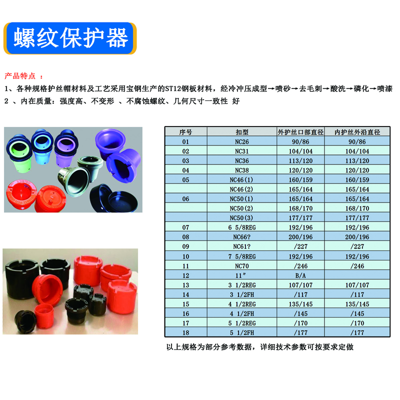 产品特点 :1、各种规格护丝帽材料及工艺采用钢板材料,经冷冲压成型→喷砂→去毛刺→酸洗→磷化→喷漆