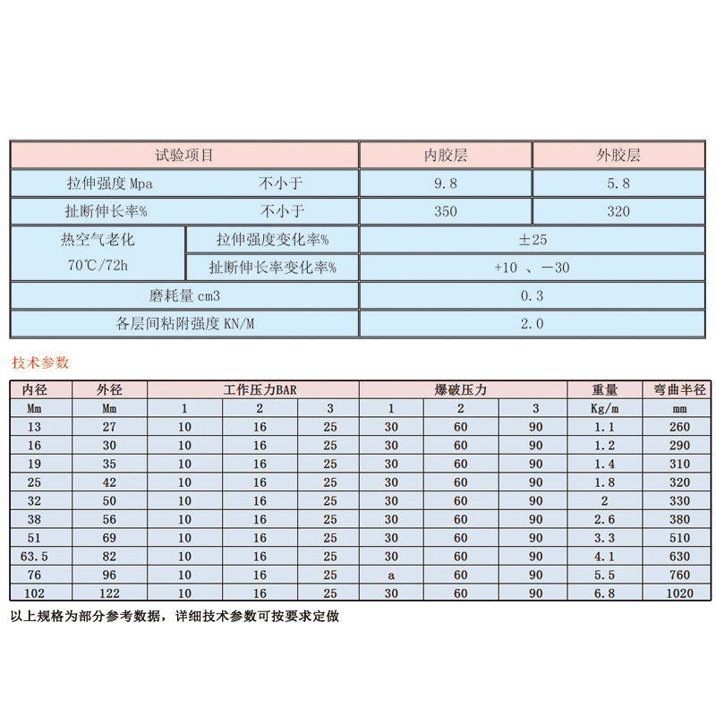 外胶层采用耐磨耐候的复合橡胶,保证其在苛刻恶劣的环境下不产生龟裂。